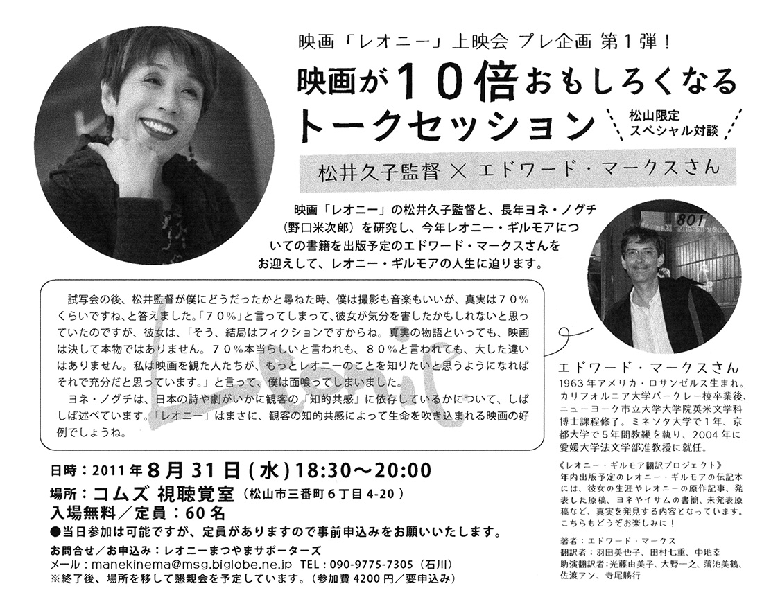 映画が10倍おもしろくなるトークセッション[レオニー・ギルモアの人生に迫る] : 8月31日(水)18:30~20:00 コムズ視聴覚室